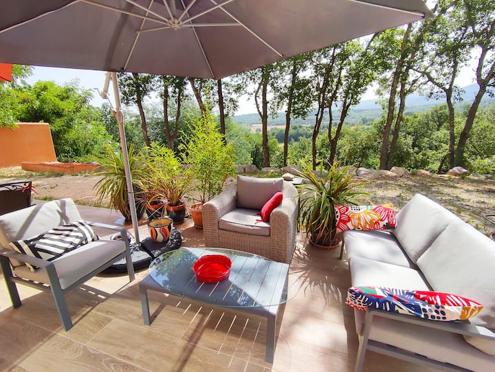 Venga a relajarse en este alojamiento muy reciente, tranquilo y elegante, en el corazón de un parque de 6000 m2, al pie del macizo del Canigó. Podrá bañarse en la piscina climatizada desde la primavera hasta la Toussaint. Dispone de una natación a contracorriente. Estará a 10 minutos de Eus (uno de los pueblos más bellos de Francia), a 5 minutos de Prades, donde encontrará un gran centro comercial y todos los comercios y servicios. También estará cerca de los muchos lugares de interés de la zona.