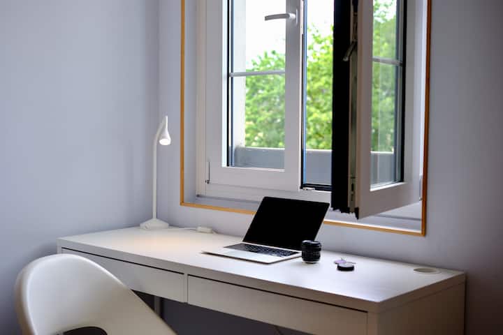 Una habitación con wifi que es ideal para trabajar.