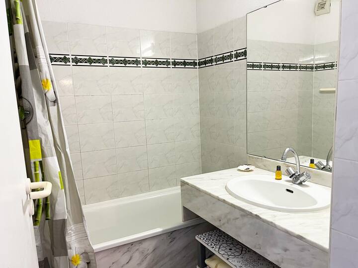 - Toallas: 1 alfombra de baño por baño y/o ducha, 2 sábanas de baño y 2 toallas de mano durante tu estadía. Ropa de cama adicional o cambio y limpieza con suplemento