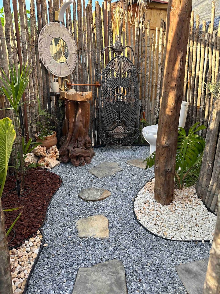 Relájate con una ducha exterior y un jacuzzi.