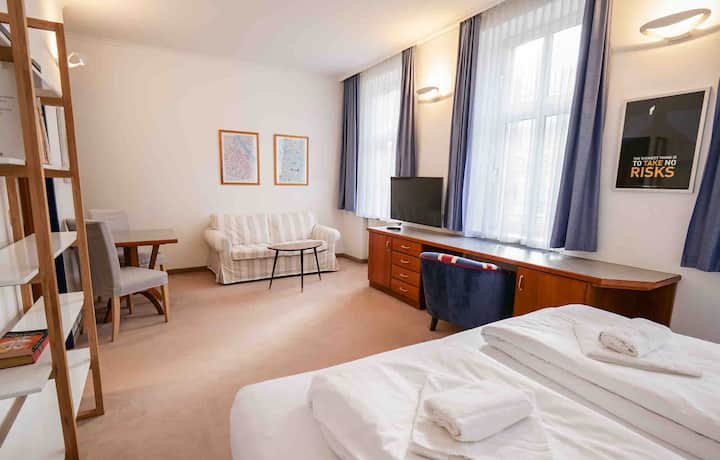 Somos una casa de huéspedes familiar ubicada en el encantador segundo distrito de Viena, Austria. Ofrecemos excelentes apartamentos con servicios y con todos los servicios para profesionales, así como para turistas en Viena para cualquier estancia, desde acogedores estudios hasta amplios apartamentos de 2 habitaciones. Nuestros apartamentos de la ciudad están totalmente equipados y amueblados con todo lo que necesitas para una estancia agradable, ¡solo tienes que mudarte! Ya sea para ti, tus empleados, como viajero o para tus aventuras académicos. Aprovecha nuestra excelente ubicación cerca del centro de la ciudad con una infraestructura excepcional y líneas de transporte público cercanas. Y si no estás a la altura de la acción de Viena, relájate en nuestra pequeña joya excepcional, el patio interior, o tu cómodo apartamento después de un día ajetreado.