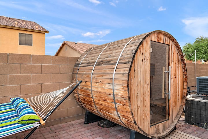 Nuestra gran y moderna casa convenientemente ubicada a medio camino entre Tucson y Phoenix es el refugio perfecto para tus vacaciones en el desierto. Con alojamiento para 14 huéspedes, múltiples áreas de estar, servicios para niños y un espectacular patio trasero similar a un centro vacacional con piscina climatizada, bañera de hidromasaje, sauna y comedores y salas de estar, te encantará cada minuto de tu estancia aquí.
