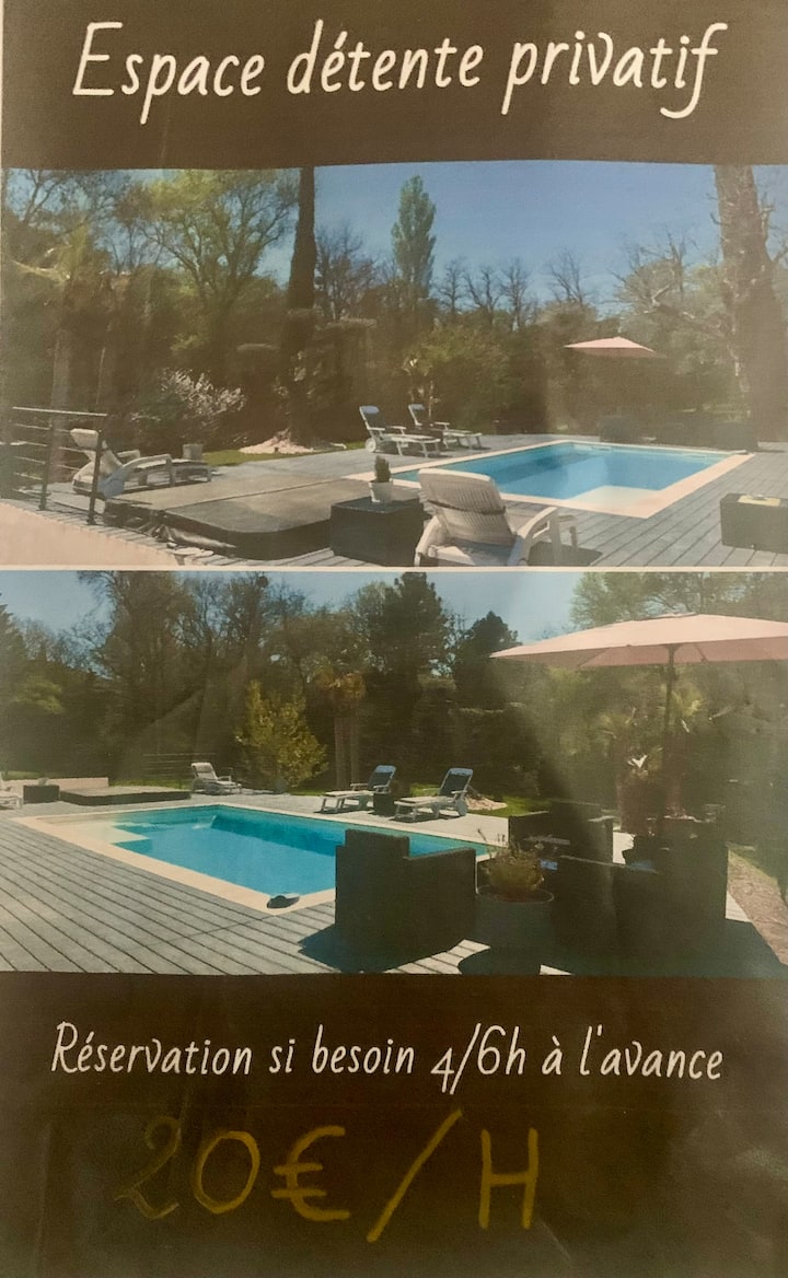 Bjr, ofrezco 2 alojamientos (16 camas en total) en Puygiron: el primero con patio para 4/6 personas, piscina climatizada y jacuzzi (todo el año) al aire libre, 1er piso, aire acondicionado 2 dormitorios, 2 TV, zona de nevera/mini horno/placa de inducción/microondas, cubiertos, vajilla, baño y aseo. El 2nd: una gran villa T5 con piscina y parque arbolado, divisible en 2 apartamentos independientes para 8/10 personas. Noche, WE, semanas o zona de piscina/spa solos