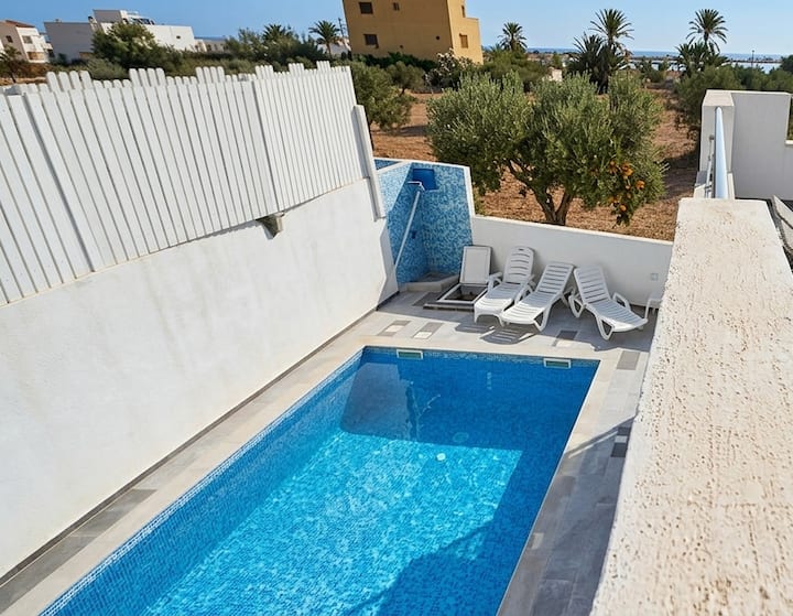 VILLA HANNAH , piscina sin vecinos , muy bien equipada en una zona súper tranquila cerca de las playas más hermosas de Djerba.
