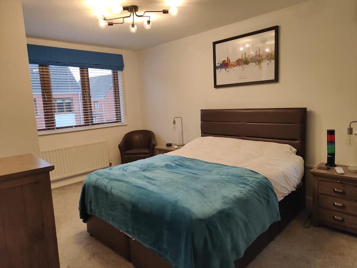 Habitación privada con cama tamaño king en una casa unifamiliar encantadora