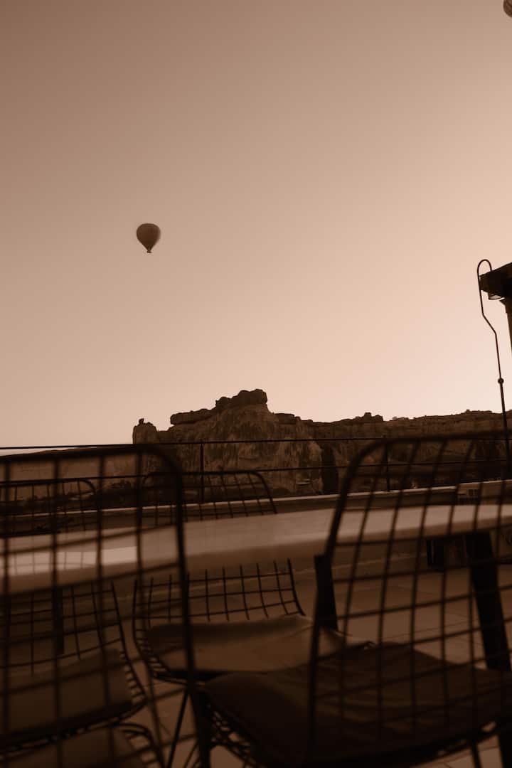 Ubicado en Cavusin, en la carretera Goreme de Capadocia, el Heritage Cave Inn es un encantador hotel del pueblo, que tiene una arquitectura única con sus cuevas y antiguas habitaciones de piedra. La terraza del centro vacacional rodeada de casas antiguas que representan la arquitectura local tiene vistas panorámicas. Se encuentra a solo 100 metros del punto de partida de los globos aerostáticos. Estamos listos para disfrutar de esas bellezas únicas de Capadocia viendo los globos desde la terraza del hotel.