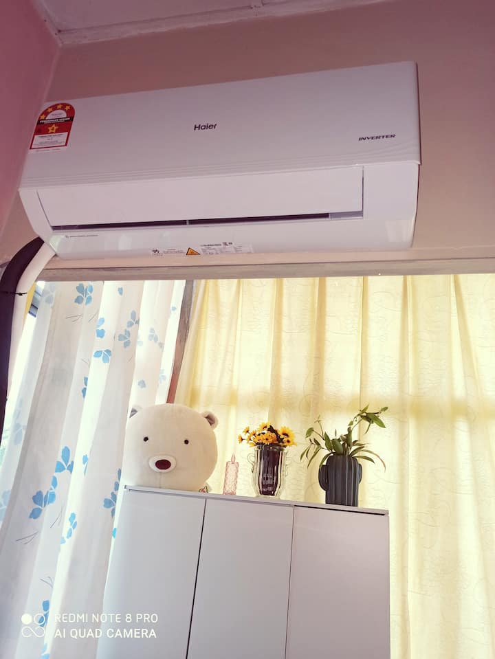 外面的民宿,像这样的房间一模一样的,每个月的租金大概是月租RM1800-2500左右,(外面的民宿没有提供特别嘉宾服务和免费早餐的)。我们只收平价。提供给房客特别优惠的价格。床的上面是新安装的智能冷气空调,可以根据你个个人的喜好来设定.我们的民宿, Más de如果住一个月的话大概是马币 1000左右而已,是我们提供给房客特别优惠的价钱, servicios会为房客提供特别嘉宾服务 VVIP.