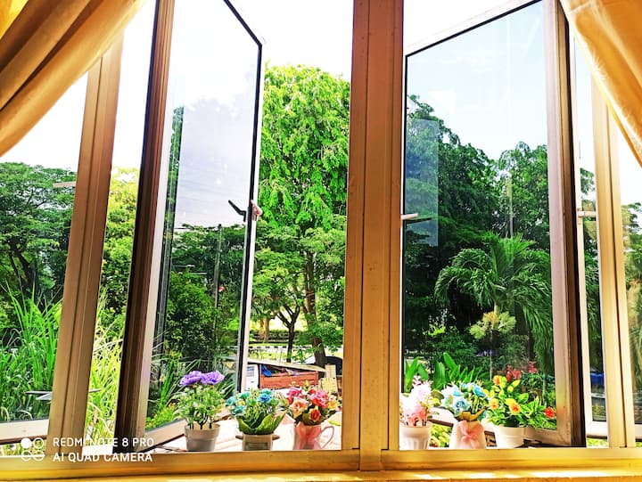 Si te gusta una bonita habitación con vistas al jardín y quieres caminar 2 minutos hasta el centro comercial: cerca de todo, incluyendo comida, clínica, tiendas de comestibles, Jennifer Mama Guesthouse Bandar Bukit Tinggi Klang Selangor es la mejor opción. No necesitas coche si vives en esta casa de huéspedes