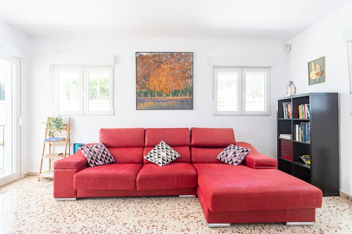 Villa con piscina, soleada, tranquila y céntrica