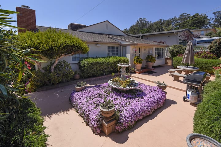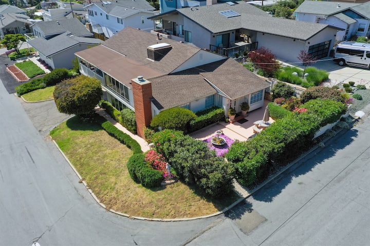 Bienvenido a The Miramar House, tu serena escapada moderna de mediados de siglo en el corazón de Morro Bay. Este espacioso refugio de 3 dormitorios y 3 baños combina un estilo elegante con servicios cuidados, que incluyen hermosas vistas y múltiples áreas de estar para la máxima relajación. Comienza tu estancia en el encantador patio delantero, equipado con asientos y parrilla de propano, perfecto para cenar al aire libre. En el interior, explora las características únicas del alojamiento, desde la sala de estar principal con una chimenea de gas de leña hasta una sala de estar del nivel superior con un tocadiscos clásico y acceso a un balcón cubierto. El nivel inferior ofrece una zona de entretenimiento completa, ideal para relajarse con una película o un juego de cartas. La suite principal, con puertas francesas que conducen al balcón y un lujoso baño privado, es un paraíso tranquilo. Dos dormitorios adicionales, una mesa de ping-pong en el garaje y toques modernos como un sistema de bebida por ósmosis inversa garantizan una estancia cómoda e inolvidable. ¡Descubre tu escapada perfecta a la costa central en The Miramar House, donde te esperan comodidad, estilo y relajación!