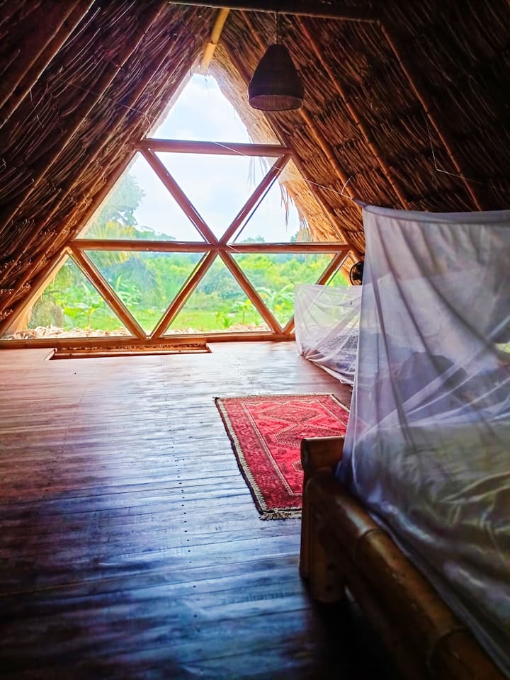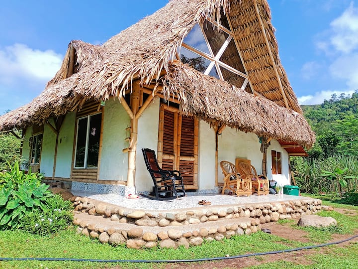 Acogedora casa de bambú en la selva