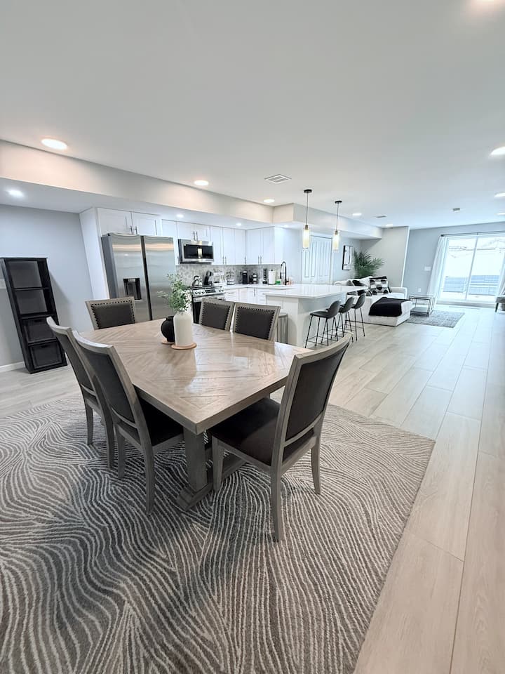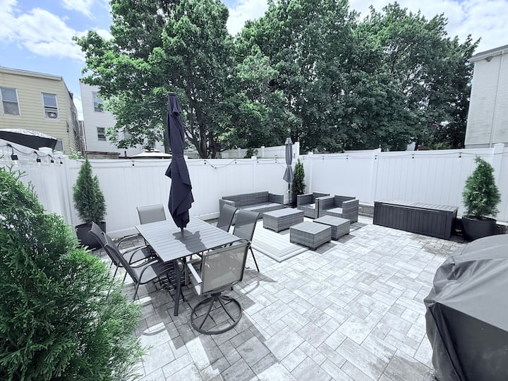 ¡Bienvenido a nuestra nueva y lujosa casa de 3 dormitorios y 2,5 baños en la sección Bergen-Lafayette de Jersey City, a solo minutos de Nueva York! Disfruta de un fácil acceso al tren PATH y al aeropuerto de Newark, además de atracciones cercanas como Times Square, la Estatua de la Libertad, Liberty State Park y el estadio MetLife. Relájate en el gran patio trasero con un acogedor sofá, comedor, juegos al aire libre y una parrilla Weber profesional de 3 quemadores, perfecta para las noches de verano. ¡La animada vida nocturna y las opciones gastronómicas también están cerca!