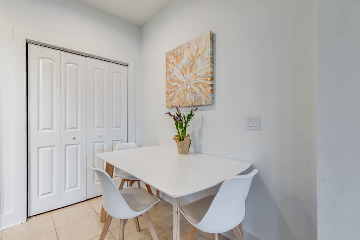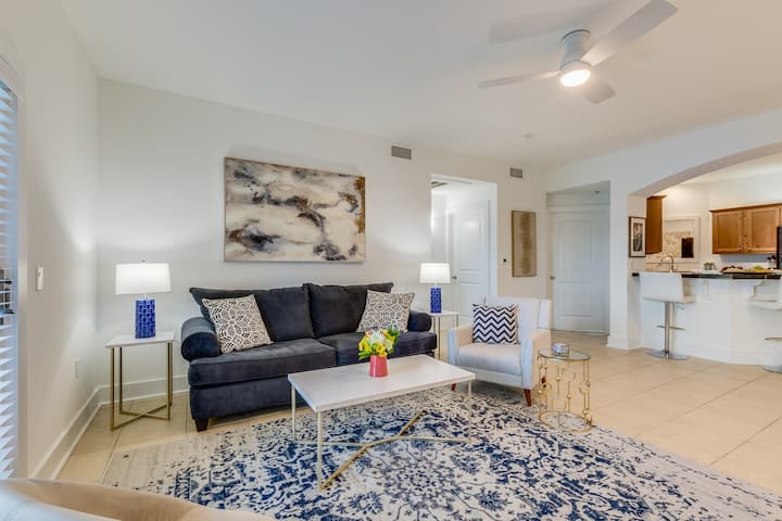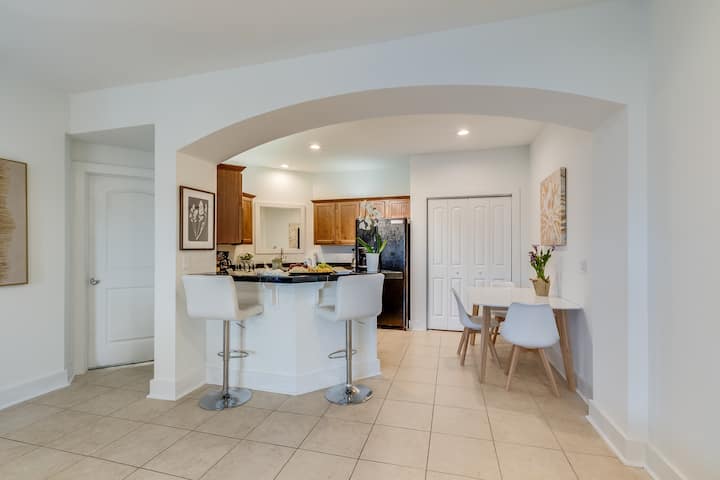 5 veces más grande que una habitación de hotel y a pocos minutos de la playa, pero en medio de un centro vacacional cerrado. ¡UN club, tiene comodidades en el lugar con 45 restaurantes y bares, así como ¼ de milla a Target, Publix, cines, tiendas y entretenimiento para todos los grupos de edad! Residencias totalmente amuebladas disponibles con lavadora y secadora en suite y cocina completa y moderna cocina completa y moderna, comedor, baños espaciosos y mucho más.