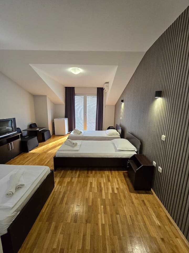 Además de las fantásticas habitaciones de apartamentos, nuestra villa recientemente reformada también tiene una tienda de belleza en las instalaciones. Cada apartamento contemporáneo tiene baño, aire acondicionado, minibar y acceso a internet wifi.