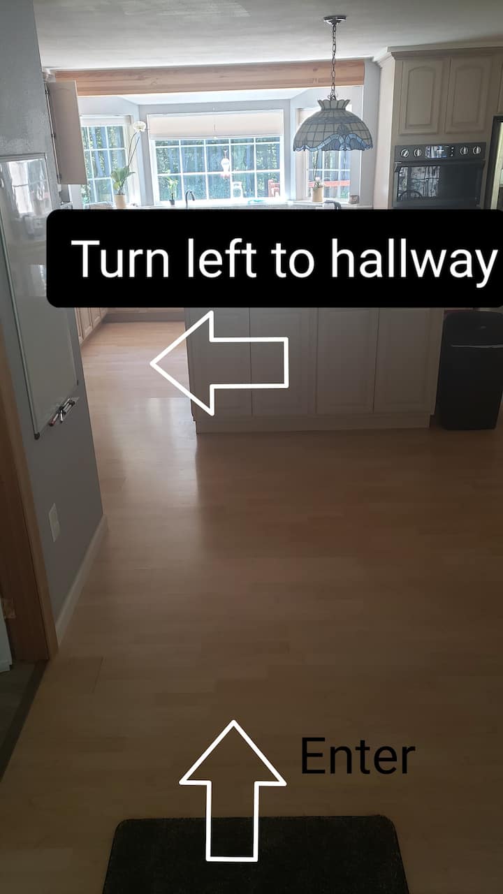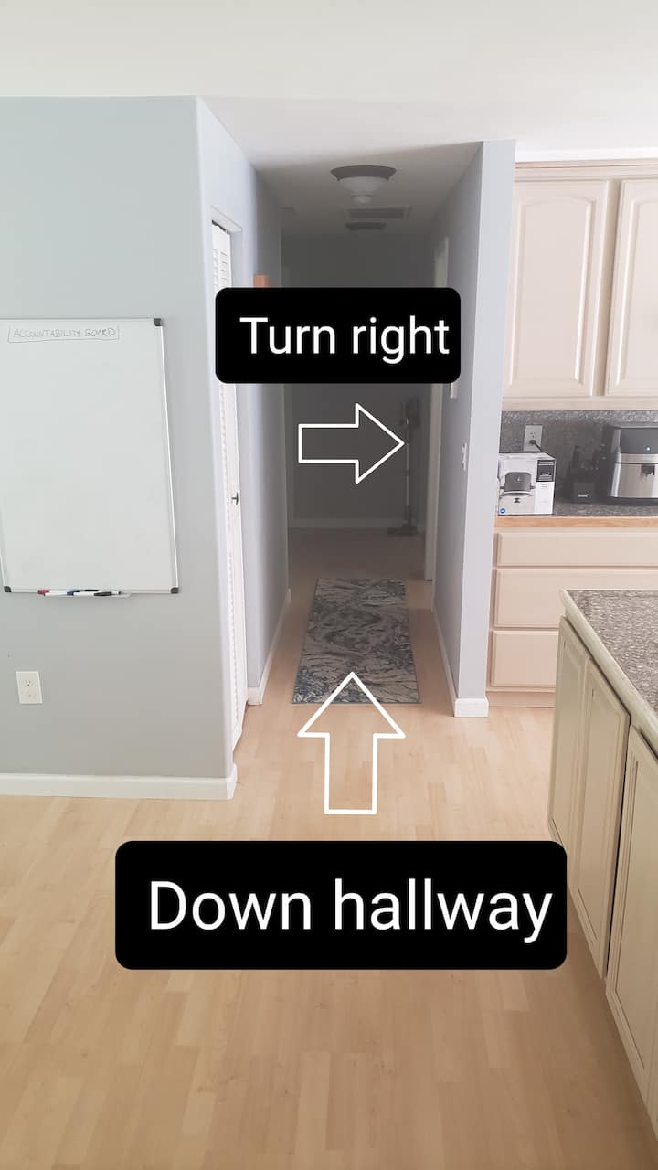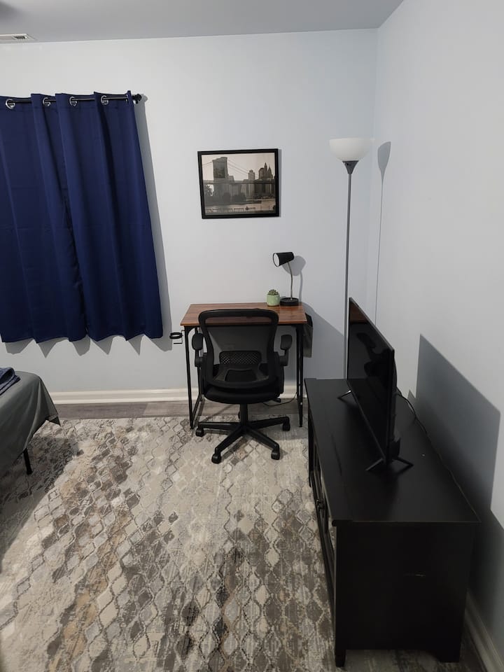 Amplia habitación azul privada y cómoda cerca de la autopista 16.