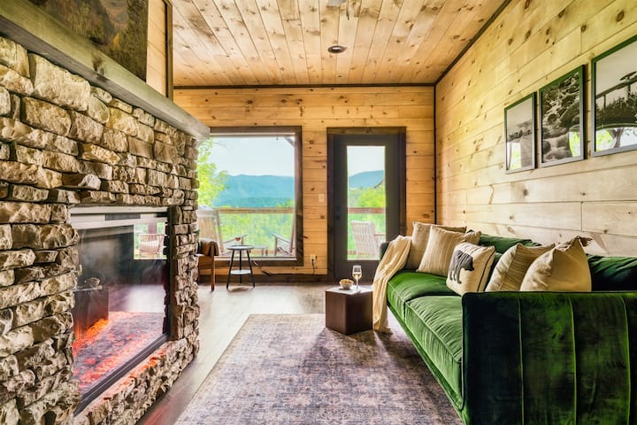 *NUEVA CONSTRUCCIÓN (mayo de 2023)* Cabaña de lujo de 3 dormitorios/2 baños completos + 2 baños situada en Chalet Village, el lugar más buscado de Gatlinburg. Knock on Wood Cabin está perfectamente ubicado en las Grandes Montañas Humeantes, a solo 2,9 millas del centro de Gatlinburg, a 0,5 millas de una piscina de la casa club, a 2 millas de Parkway y a 2 millas del Gatlinburg Welcome Center. La cabaña cuenta con vistas panorámicas, una sala de juegos, 4 chimeneas, 3 terrazas cubiertas y 2 salas de estar. Disfruta de la relajación pura en esta encantadora cabaña de las Montañas Humeantes.