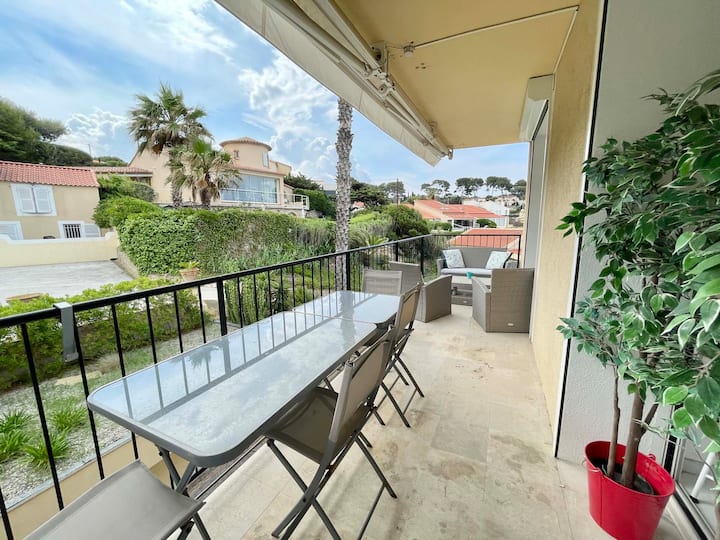El apartamento, ubicado en el tercer y último piso, ha sido recientemente renovado con buen gusto. Residencia con ascensor. Para los exteriores, puedes disfrutar de más de 14 m² de terraza con vistas panorámicas al mar con todos los muebles necesarios. Se accede desde la sala de estar, pero también desde el dormitorio. En cuanto a las camas, el dormitorio tiene una cama de 140x200, así como un televisor multimedia, y la sala de estar tiene un sofá convertible. La cocina está totalmente equipada (nevera-congelador, placa de inducción, cafetera Nespresso, hervidor de agua, lavavajillas, horno, microondas... ¡y bodega!) La lavadora está en la cocina. Para los servicios, tendrás un baño moderno con secadora de toallas e inodoro. Para ir a la playa, solo tendrás que bajar 3 pisos, en ascensor o no para los más atléticos, para disfrutar de la playa de arena de "Gorguette", a los pies del edificio, que rara vez es frecuentada. Solicitamos un depósito del 25%. El saldo se paga 1 mes antes de entrar en las instalaciones y, a más tardar, 2 semanas antes de tu llegada, excepto en el caso de reservaciones de última hora. El impuesto turístico se debe al propietario por cada inquilino mayor de 18 años. El monto es el especificado por la oficina de turismo. La limpieza final está incluida e incluida en el precio. Para mayor comodidad, tienes la opción de tener sábanas y toallas por 25 euros por cama individual y 35 euros por cama doble. A todas las llegadas los domingos y días festivos se les cobrará 100 euros adicionales. También se cobrará una tarifa adicional a las llegadas los días laborables después de las 6:00 p. m. Pedimos que se nos pague un depósito a la llegada con cheque o efectivo, no se cobra y se devuelve el día de salida si todo está en orden. Te enviaremos un contrato que contiene tu información, la de la agencia y la propiedad alquilada y se nos devolverá firmada. Se solicitará un certificado de seguro de vacaciones o responsabilidad civil. Ningún alquiler será definitivo sin estos documentos. Ven y disfruta de las bellezas de nuestra región a través de nuestros apartamentos y casas: las playas y los espacios naturales protegidos y desarrollados, los parques naturales de Port-Cros y Porquerolles, cuya playa de "Notre Dame" fue votada como la playa más hermosa de Europa, paseos junto al mar como el recorrido en barco por las calas Cassis, caminatas en las gargantas del Verdon o en el camino costero y, en particular, Cap Sicié. Puedes descubrir Bandol, Sanary sur mer, el pequeño pueblo medieval de Castellet, muy agradable para pasear o compartir un helado, descubrir los vinos de Bandol. Las fincas Bandol se encuentran principalmente en la comuna de La Cadière y puedes disfrutar de los magníficos paisajes en todas las estaciones. Recomendamos el molino de Saint Côme para hacer aceite de oliva. También recomendamos el paseo hasta el Mont Faron para disfrutar de las magníficas vistas al mar sobre uno de los puertos más hermosos de Europa. Nuestros productores agrícolas te dan la bienvenida de abril a septiembre de todos los lunes, miércoles y viernes de 6:00 p. m. a 8:00 p. m. para ofrecerte productos locales frescos (frutas, verduras, huevos, pan, queso, miel, etc.). Los mercados de Sanary, Bandol, Saint Cyr, etc. tienen lugar todos los días, y los grandes mercados tienen lugar los martes en Bandol, el miércoles en Sanary y el jueves en Saint Cyr. Para tus hijos, el parque de atracciones OK Corral en Cuges les pins, Aqualand en Saint-Cyr sur mer, el parque funfair, el entretenimiento junto al mar (trampolín, bungee), actividades acuáticas (buceo, vela, pádel, paravelismo, moto acuática, etc.), excursiones en barco, el jardín zoológico de Bandol. Si buscas pequeños juegos de mesa, te recomendamos l 'Stanière, una tienda que ofrece un gran número de juegos de mesa para todas las edades.