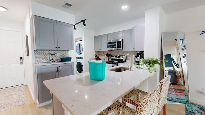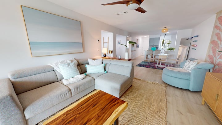 ¡Uno de los mejores de Folly! Disfruta de las vistas panorámicas del paseo marítimo en Salty Sunset. Esta unidad de 2 dormitorios/2 baños recientemente renovada puede alojar a cinco huéspedes. Disfruta de una cocina moderna y un amplio salón. La comunidad de Mariner's Cay proporciona acceso a una piscina y canchas de tenis (cerradas). Los dos dormitorios cuentan con una cama tamaño king, 2 camas convertibles individuales y un sofá cama completo. El barrio tiene una entrada cerrada y se proporciona 1 tarjeta de acceso a la puerta. Esta comunidad prohíbe las motocicletas, los remolques de barcos y fumar. Salty Sunset