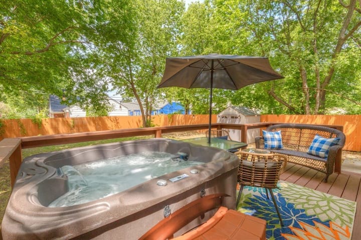 Obra maestra en el centro de la ciudad con bañera de hidromasaje, 2 camas tamaño king, baño de spa
