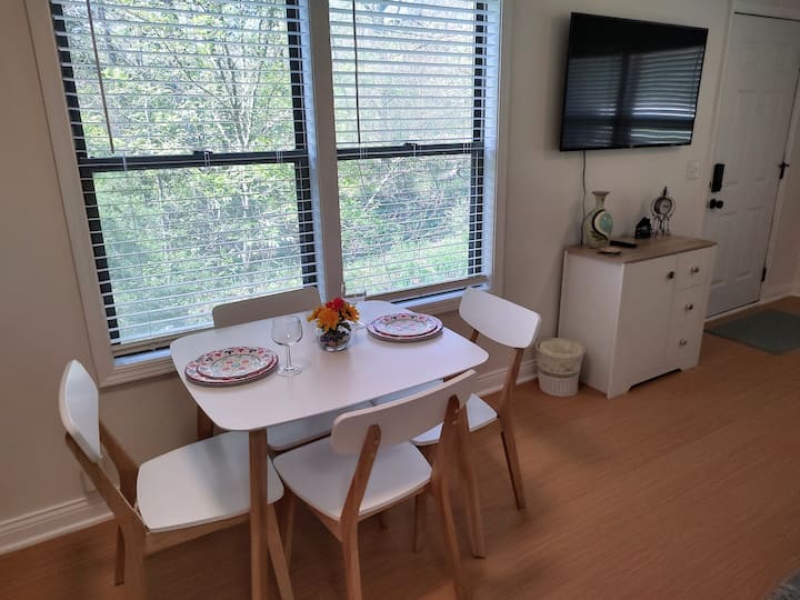 Estudio aislado con vistas al lago y fogata