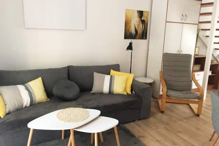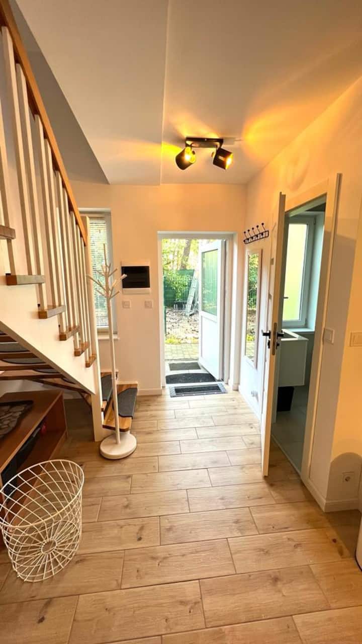 Casa adosada en el bosque a 800 m de la playa con terraza.
