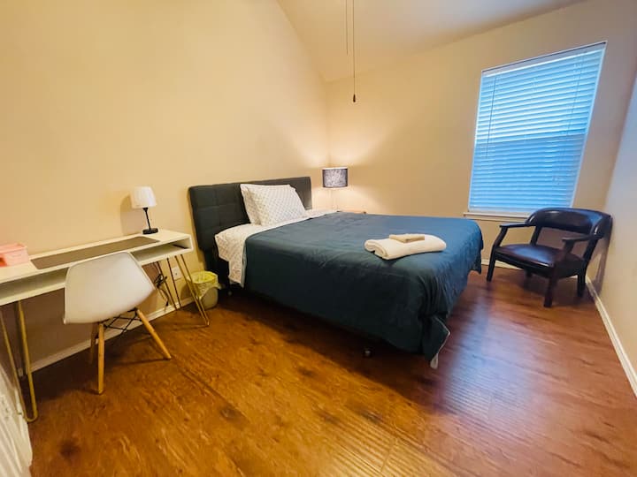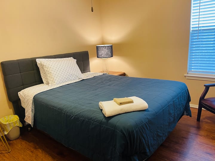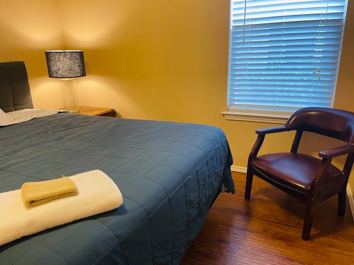 Dormitorio de invitados privado, fresco y cómodo con armario