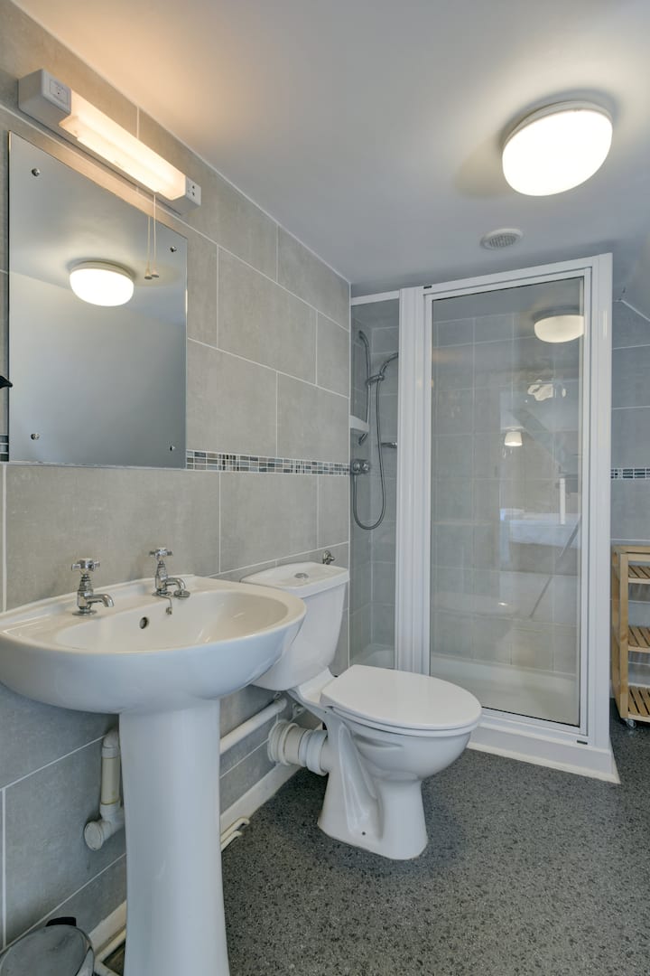 La entrada a la propiedad es a través del gran porche hacia el pasillo, ambos con mucho espacio para los wellies y las botas para caminar. El salón comedor tiene dos cómodos sofás, quemador de madera y mesa de comedor con seis sillas. La cocina está en el lado opuesto del pasillo y recientemente se ha equipado con todos los electrodomésticos nuevos y tiene una mesa de comedor más pequeña con cuatro sillas y taburetes adicionales. La puerta trasera de la cocina conduce unos escalones hasta un patio cerrado, un lugar ideal para dejar que los perros se sequen o se enfríen, dependiendo de la temporada. También hay un bonito jardín a un lado y delantero con asientos exteriores. La escalera desde el vestíbulo de entrada conduce a los dos dormitorios individuales en el primer piso. El baño familiar también está en el primer piso, que consta de una ducha grande, además de un inodoro y un lavabo de mano. Sube una escalera estrecha hasta el segundo piso está el dormitorio principal con cama tamaño king y baño privado con ducha, inodoro y lavabo de mano. Ten en cuenta que no hay baño en esta propiedad.