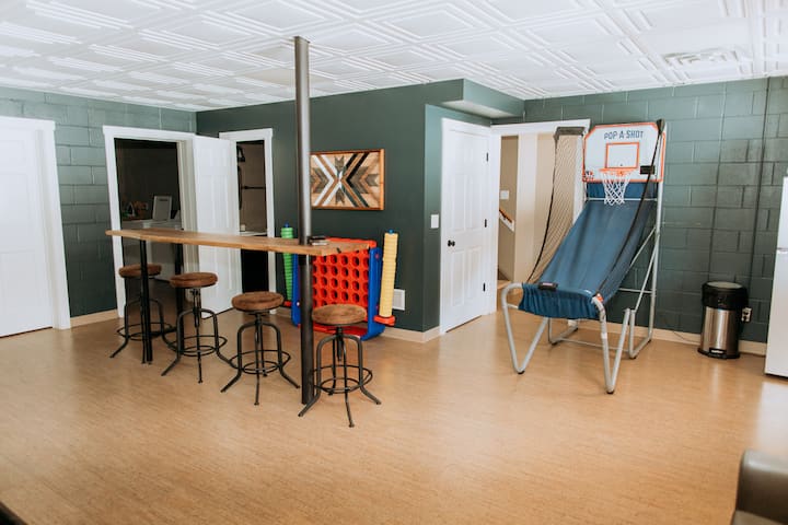 Los huéspedes tienen acceso exclusivo a toda la cabaña y a la propiedad circundante, incluidas rutas de senderismo, bosques, praderas y estanques. Hay una sala de lavandería en el nivel inferior de la cabina con dos lavadoras y dos secadoras a las que los huéspedes tienen acceso durante su estancia. Alrededor de la cabina, hay un camino de entrada pavimentado y áreas de estacionamiento pavimentadas. ¡Hay mucho espacio para estacionar un remolque de barco si disfruta del lago Seneca! La cabina es accesible para sillas de ruedas con una rampa para entrar en el nivel principal. El baño principal cuenta con una ducha a ras de suelo con barra de agarre para mayor seguridad. No tendrás acceso a ningún servicio ubicado en The Little Cabin at The Hideaway (se puede solicitar acceso). ¡Ningún otro huésped se hospedará en la propiedad mientras estés allí!