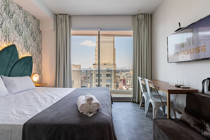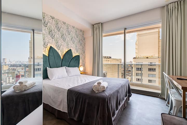 ¡Usted en la cima de SP - Cama Queen + Aire Acondicionado!