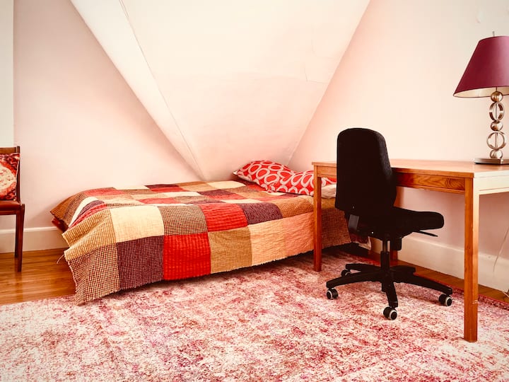 Habitación soleada de color rosa en el 3er piso en una casa familiar