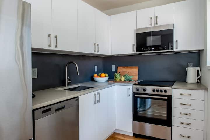 Nuestros otros servicios estándar realmente ponen la vida en una habitación de hotel estrecha y cortada de galletas para avergonzar: tendrás una cocina completa, lavandería, wifi rápido, un televisor inteligente y total privacidad para tu estancia. Todos nuestros alojamientos cuentan con cámaras de timbre y entradas sin llave codificadas a medida, para que puedas descansar tranquilo sabiendo que tu seguridad es de primera categoría. Tampoco pagarás mucho dinero cada día para estacionar en una terraza de varios pisos sinuosa, ya que todas nuestras propiedades tienen estacionamiento gratuito fuera de la calle o en la calle.