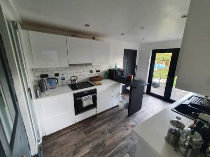Pilgrim Lodge tiene una cocina moderna recién equipada con horno, vitrocerámica, microondas, utensilios de cocina, vajilla y cubiertos, y una lavadora. Además, hay dos hervidores, una tostadora, un molinillo de café, una prensa francesa y una máquina Nespresso. Hay una pequeña barra de desayuno y taburetes altos. Suministramos café, cápsulas de Nespresso y té.