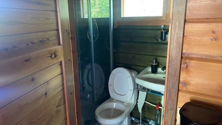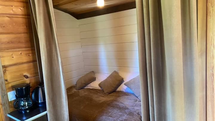 Cabaña romántica con piscina privada.