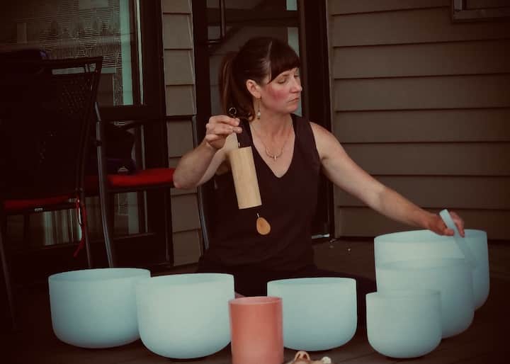 Soy instructora de yoga certificada y sanadora sonora certificada, y combino la magia de los cuencos tibetanos de cristal con el yoga, el trabajo de respiración y el movimiento.
