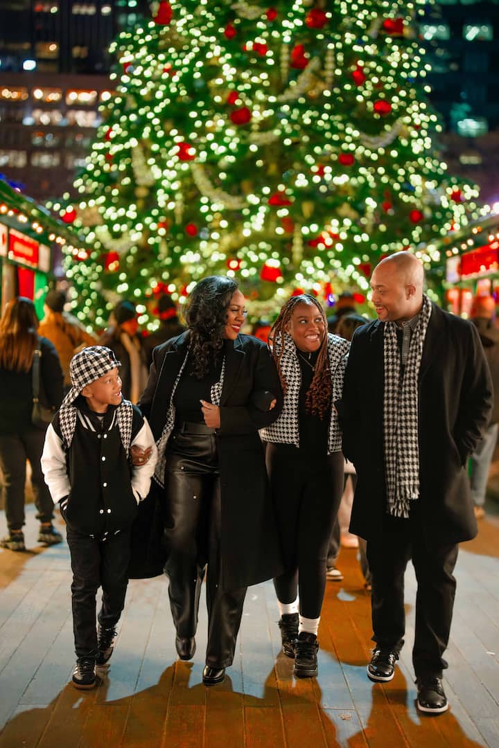 En medio de las luces centelleantes de la Villa de Invierno de Bryant Park, el imponente árbol de Navidad brilla con maravillas navideñas. Cada adorno brilla como una historia de la temporada, perfecto para una sesión de fotos de 30 minutos. Una celebración de la magia de Nueva York donde los sueños de invierno cobran vida bajo 12 000 luces. Todas las fotos sin editar están incluidas y las fotos editadas se pueden comprar por $25 cada una.