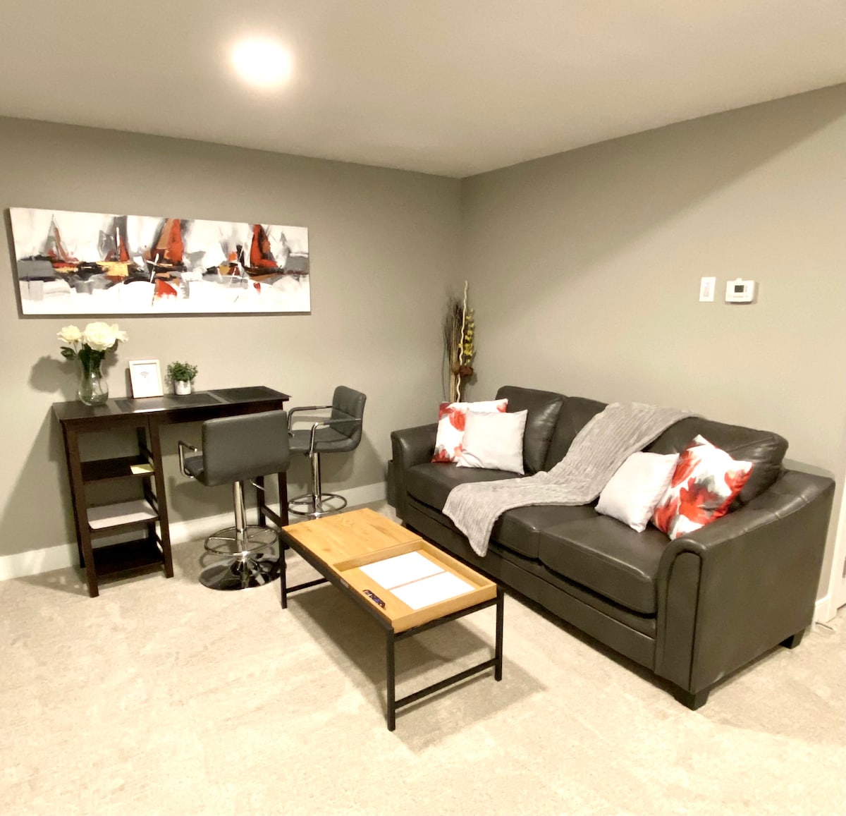 Kick back and relax in this zen looking, brand new stylish space! Enjoy the feature wall which lights up and provides a zen like experience. We are located 6 mins away from the world famous West Edmonton Mall, 15 mins to downtown and the University of Alberta! We are also just minutes to the Lewis Estates Golf Course, and the Rivercree Casino! We'd love to invite you to stay here. Book your stay with us today!