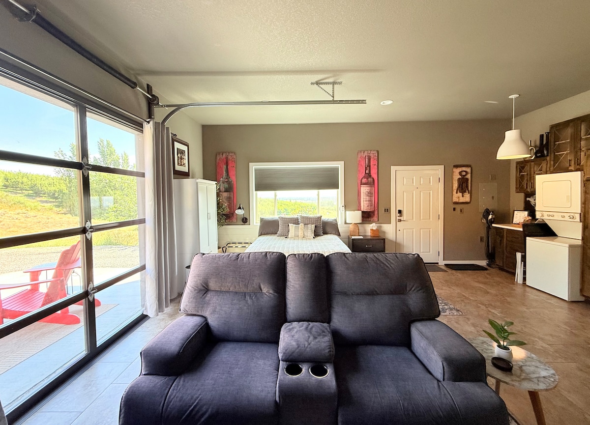 Welcome to Cabernet Hill nestled in the heart of wine country! Our cozy private Airbnb retreat boasts beautiful panoramic views of orchards and Mount Adams. Look through our personal digital guidebook to see all the delicious food and beverage options just a few minutes away, or simply relax on our private patio and fire table area. We have thoughtfully curated a space that would provide comfort and relaxation with all the amenities you’d need for a country side stay.